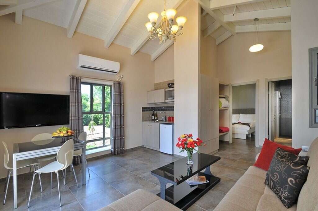 מה במתחם? 30 חדרי פרימיום המתאימים לזוגות ולמשפחות (עד זוג+2), בהם מיטה זוגית ועוד שתי מיטות נפתחות לילדים, שירותים ומקלחת, מטבחון מאובזר במיקרוגל, קומקום, מקרר וכלי אוכל, פינת ישיבה בתוך החדר ומחוץ לחדר. בנוסף, במתחם תמצאו מדשאה עם מנגלים.
