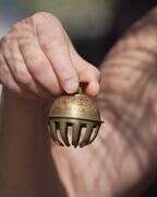 AP/אלן ג'י בריד | שון רמזי, מצלצל בפעמון פליז זעיר במהלך מפגש "אמבטית יער" בארבורטום JC ראולסטון בראלי, צפון קרוליינה