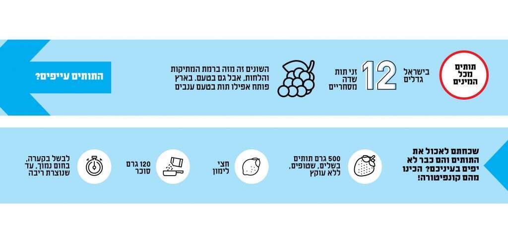"הבעיה בייבוא התותים היא לא רק האיסור של משרד החקלאות. זה מוצר עם חיי מדף קצרים: אתה קונה תות בבוקר, ובערב הוא כבר הרבה פחות ראוי למאכל. כך שלא מעשי להטיס לישראל תותים מארצות אחרות".
