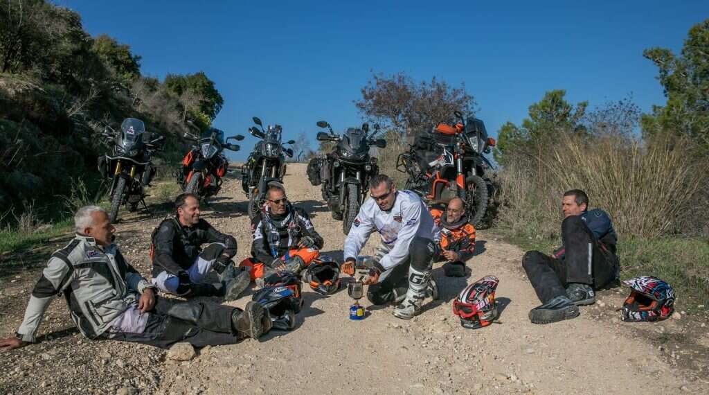 רועי שפית איתר באפליקציית המפות נקודה לנוח בה. החבר'ה פרקו את המעילים והקסדות, ושוב הקפה רתח על הגזייה. בינתיים למדתי שיש סצנה שלמה של אופנועי אדוונצ'ר, שיכולים לנסוע גם בעיר וגם בשטח. רבים מהרוכבים נוסעים באופנועיהם גם לעבודה, בגשם ובקור בימות החורף, או בלהט הקיץ הישראלי. "אלו אופנועים גדולים שיכולים לגמוא מרחקים ארוכים וגם לנסוע בשטח", מסביר טל עמיר, "הם מסוגלים להוציא אותך להרפתקה בכל מקום וזמן".