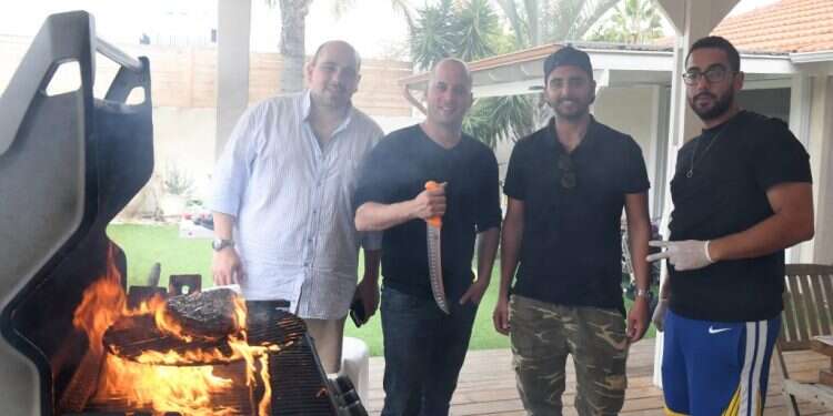 אנחנו יושבים מסביב לשולחן עץ מסיבי, בירות בצד, צלחות ענק במרכז, ובכל רגע נוחתת על המגש מנת בשר אחרת. אלמלא נוף השפלה הנשקף מהבית ועצי הלימונים המקיפים את החצר, יכולתי לדמיין בקלות שאני באיזו עיירה סקנדינבית, מתחממת עם חבורת נורדים על סטייק הגון בעיצומו של יום חורף מושלג.