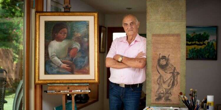 מאז חזר לצייר. בשנת הקורונה הוא בילה אינספור שעות בחברת הבד והמכחול, וכעת הוא מראה לי כמה מהתמונות היפות שיצר.