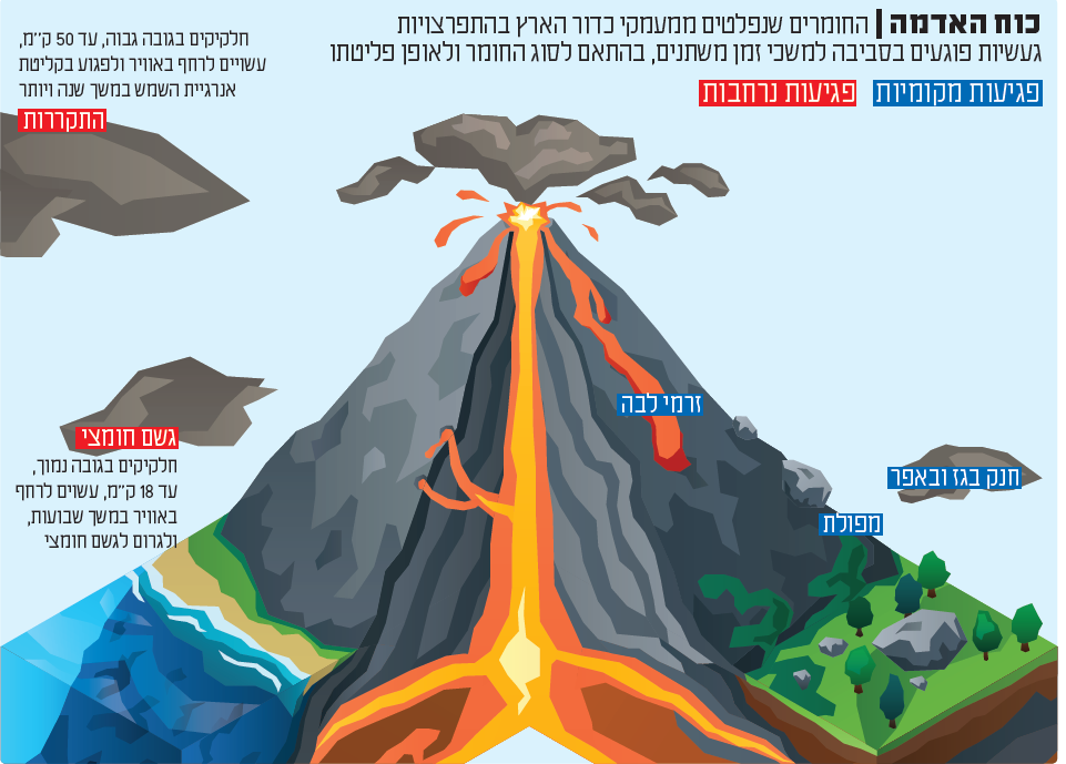 גם האזור שלנו הושפע מהתפרצויות מרוחקות. חוקרים מעריכים שבסביבות שנת 1000 לפני הספירה התפרץ הר הגעש הקלה באיסלנד, והאפר והגזים שפלט הנמיכו את הטמפרטורה במידה ניכרת למשך כעשור. באגן הים התיכון התחולל אז משבר תקופת הברונזה המאוחרת: השלטון המצרי בכנען קרס, וכך גם התרבות המיקנית ביוון. בתקופה הזו הופיעו במזרח הים התיכון "גויי הים", עמים חמושים שפשטו על המזרח הקדום. הם הגיעו כנראה מכרתים ומאיי יוון, ויש המזהים אותם עם הפלשתים של תקופת התנ״ך.