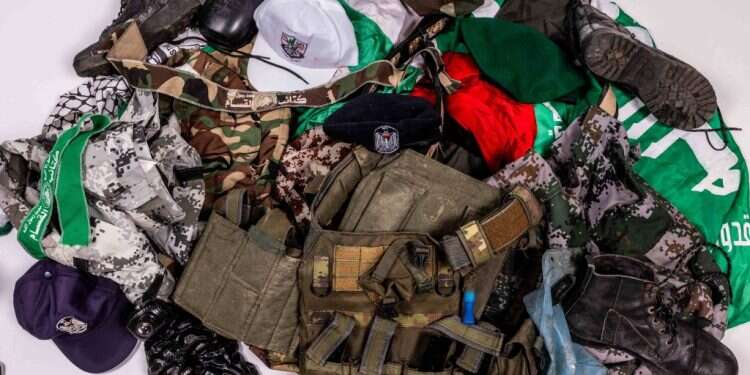 לאחר שסיימתי לצלם את המוצגים שבאוהל, יצאתי החוצה. פה נגלה החלק הפחות קטלני, אך לא פחות מעניין. אינספור פרטי ביגוד. הר של מדים, נעליים, צעיפים, כובעים. הרבה של חמאס, חלק של פת"ח. כנראה מזכרות מסוף קורס. ציוד אישי שנלקח שלל. הסתובבתי סביב מערום פריטי הלבוש, ובכל מבט משהו אחר תפס לי את העין. החל בתיק אימון של קבוצת הכדורגל של גבעת־אולגה, ועד תמונות של פקידים פלסטינים מצולמים מחויכים לצד פקידים אחרים, מלוכסני עיניים. או צילום פסטורלי (על סף מחריד) של שני בכירים פלסטינים, מחזיקים קוקוס ושותים מתוך קש. כנראה שלמישהו כאן הייתה השתלמות בכירים, איפשהו באסיה.