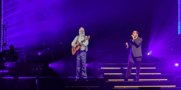 כשהגיע הרגע של הפתעת ההולוגרמה, המנחה הוותיק של המופע, נחום סג"ל, הכין את הקהל: "המופע הבא מתחייב להיות ייחודי לחלוטין, עם טכנולוגיה חדשנית שטרם הייתה בשימוש. שלום ברנהולץ יחלוק את הבמה עם אגדה מוזיקלית, קול איקוני שקם לתחייה מחדש בשביל הרגע המדהים הזה". ואז, כמו מן האוב, הופיע ר' שלמה קרליבך, שוב, על בימת האסק.