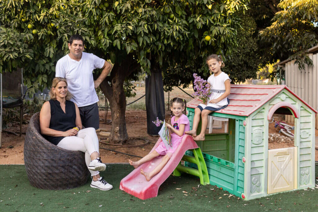 מקלט // לצד הבית יש גם מקלט בטון משנות החמישים. "לאחר טבח 7 באוקטובר היינו חודש אצל אחיה של סהר בכפר־יונה, וחיפשנו פתרונות למרחב מוגן. בצירוף מקרים נדיר הצלחנו עם השכנים לרתום את ועד המושב ואת המועצה האזורית להשקיע בהכשרת המקלט לשהייה. נאלצנו לפרק לחתיכות פסנתר ישן שהיה בו, במבצע מיוחד בעזרת חברים".