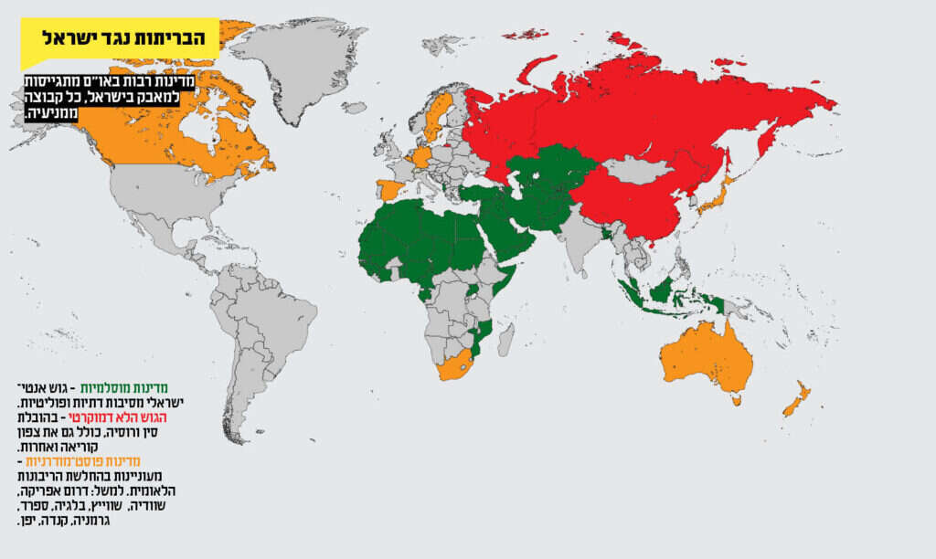 2. קבוצה חשובה במדינות הפועלות נגדנו כוללת את המדינות המוסלמיות, שיוצרות גוש הצבעה אנטי־ישראלי באו"ם. אבל יש עוד מדינות בלתי דמוקרטיות שחותרות נגדנו: רוסיה וסין הן שתי המובילות שבהן, והן מחזיקות במושב קבוע במועצת הביטחון ובזכות וטו. המדינות הלא דמוקרטיות פועלות נגד ישראל משום שהיא נתפסת כמדינה קולוניאליסטית, חלק מהעולם המערבי המדכא, וגם בגלל מאמצי המדינות הערביות והמוסלמיות נגדה: שיתוף פעולה עם גוש המדינות הערביות מספק יתרונות מוחשיים לפעולות הבינלאומיות של סין ורוסיה.