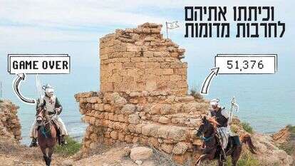 בחניון בשטח כבר המתין לו מנכ"ל חברת "למען הגיים" איתי ביטקוין, צעיר מחוטט פנים בעל קול צפצפני של מתבגר. רק אחרי שווידא שאין איש בטווח ראייה או שמיעה, הסיר איתי מפניו את החצ'קונים המלאכותיים. "אין ברירה", הסביר לשר בקול מחוספס, "אם ידעו שאני בן ארבעים פלוס, אין לי סיכוי בשוק הזה. נערי פלא, זה מה שכולם מבקשים היום". אחר כך הציג את הפיתוח שעליו עמל בחודשים האחרונים במשרדי החברה שלו (שהוסוו כמרתף־בבית־ההורים, בדיוק מאותה סיבה). שר התיירות לבש את סרבל המציאות המדומה שהוגש לו והרכיב את משקפי המציאות הרבודה, בעוד איתי עושה כמוהו. לפניו ראה השר לוחם מוסלמי קדום עם כל הקלישאות הנדרשות – מהבד המכסה את הראש ועד הסנדלים הקוּראניים שרצועותיהם מלופפות סביב הרגליים. סביבו, המרחב הגלילי העשבוני נותר בדיוק כפי שהיה. כשהביט על עצמו ראה שהוא לובש דמות של נוצרי מימי־הביניים, עטוי שריון אבירים עם פאוץ' לנוקיה. קצת חיפפת בתחקיר ההיסטורי, הוא נזף בהייטקיסט שמולו, אבל את זה בטח אפשר לסדר.