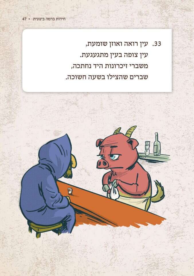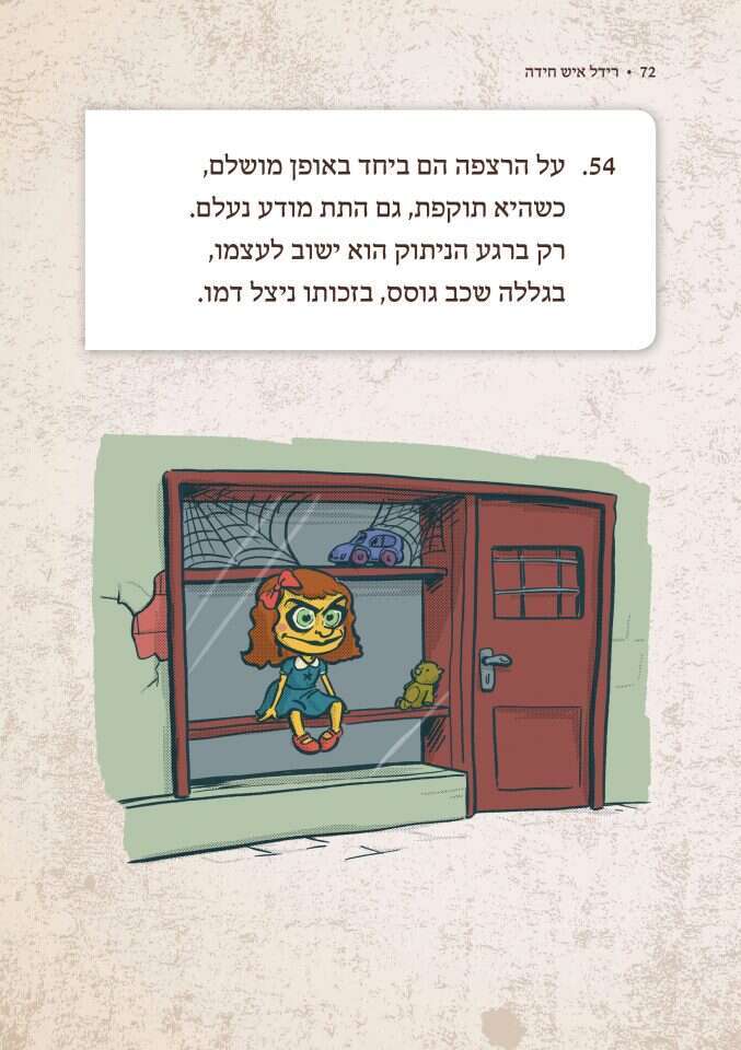 יענקלוביץ': "אמרנו לו שאנחנו צריכים משהו שירמוז על החידה אבל שלא יגלה מה הפתרון. מי שיפתור את החידות יראה שיש שם כמה איורים שהם פשוט הברקה".