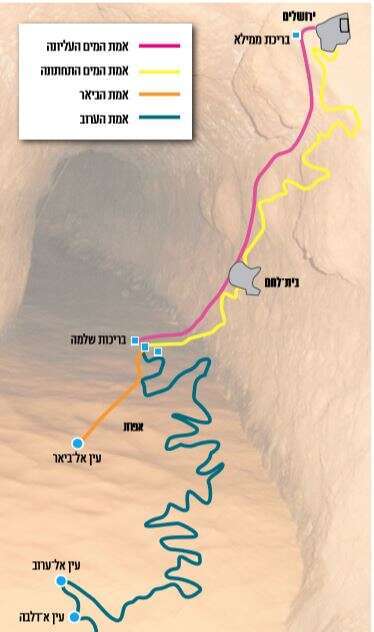 "אמת הביאר נחצבה במורד הוואדי למרחק 4.7 ק"מ, בקו ישר כמעט", אומר רוטר. "זו מערכת המורכבת משתי מנהרות ושני קטעי אמה פתוחה. מי המעיין הובלו אל העליונה שבבריכות שלמה - שלוש בריכות שנבנו בידי החשמונאים, אולם בימי הביניים יוחסה בטעות כרייתן למלך שלמה, כמו כל מבנה מרשים בסביבה. האמה קלטה לתוכה לא רק את מי הביאר, אלא גם את מי עין אל־מע'רה, הנובע סמוך לתוואי שלה. עומק המנהרות ואמת המים – כ־8 עד 11 מטר מתחת לפני הקרקע – מביא לכך שהאמה סופחת אליה כנראה גם מי תהום רבים. זאת ניתן להסיק מההבדל בין ספיקת המים בעין אל־ביאר, שעומדת על 3.6 מ"ק בשעה בממוצע, לעומת ספיקת המים במוצא המנהרה - 10.4 מ"ק בשעה, כמעט פי שלושה".