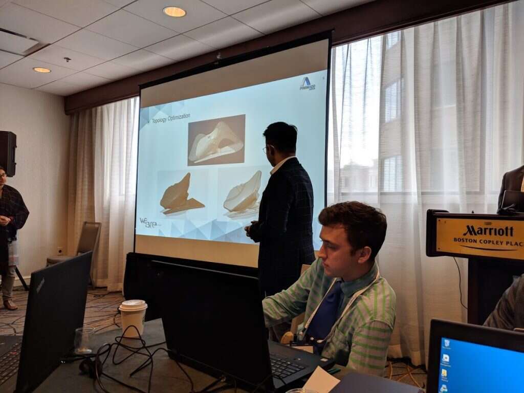 הקבוצה השלישית, שני סטודנטים צעירים במיוחד מאוניברסיטת מסצ'וסטס לוול, בדקו את כיוון ההדפסה האידיאלי של פיסת מתכת פשוטה. הם בחנו את העמידות והגמישות שלה בחומרים שונים, בהדפסה מאונכת ובהדפסה מאוזנת, את כמות החומר שתלך לאיבוד על תמיכות בהדפסה אלכסונית, ועוד ועוד. "בשלב הבא היינו רוצים לבחון את המסקנות שלנו על הדפסת מודל בפולימר פלסטיק", אמר ברט ודמן, אחד מהשניים, בסיום המצגת שלו. "נוכל להסיק מתוך כך מסקנות לגבי הדפסה עתידית של אותו דגם במתכת".