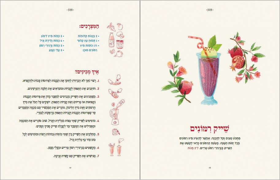 בחירת המתכונים לספר הנוכחי הצריכה התאמה לקהל היעד - ילדי הגן. "חיפשתי דברים שהם קלי הכנה, ושהמרכיבים שלהם זמינים. במתכון של התמרים, למשל, יש שני מצרכים בלבד - תמרים ומרציפן. הילדים צריכים לקחת את התמרים, לפתוח אותם ולהכניס לתוכם גליל מרציפן קטן. לתאנה הבאתי מתכון של עוגת גבינה ללא אפייה, שכוללת ביסקוויטים, שמנת, גבינה, מעט סוכר ותאנים".