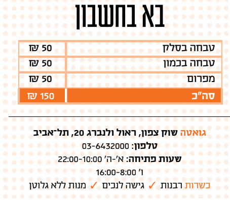 בשישי בצהריים נקלענו לשוק צפון ברמת־החייל בתל־אביב. היינו הורים רעבים עם ילדים רעבים והסתובבנו רק עם מטרה אחת: למצוא משהו לאכול. בגזרת ה"כשר" לא מצאנו המון, וגם מה שכן כשר לא היה אופציה עבורנו - במקום אחד הוגש אוכל קר לתוך חמגשיות הביתה ובמקום אחר היו רק דברים שאפשר להחזיק ביד ולאכול תוך כדי הליכה בהמון. רצינו צלחת.