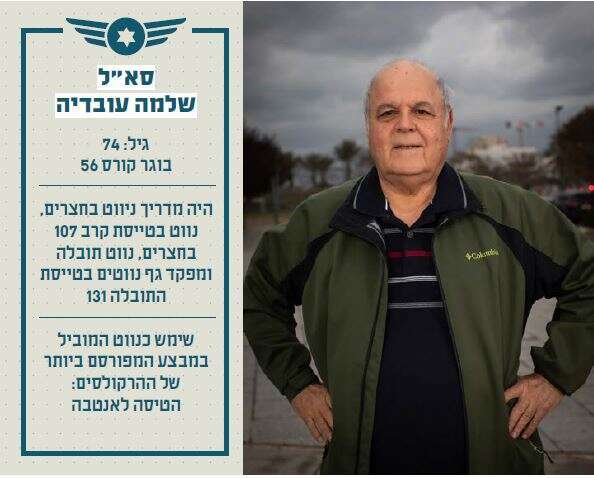 בשנים ההן הייתה המלחמה בשחקים שונה מאוד מכפי שהיא היום. אחרי תצוגת התכלית של חיל האוויר במלחמת ששת הימים, אויבי ישראל הצטיידו בכלי משחית מתקדמים: סוללות נ"מ מתוצרת סובייטית שהגנו על שמי סוריה ומצרים, והפילו מטוסים צה"ליים רבים. "חלק מהחבר'ה לא שרדו", מספר סא"ל בדימוס שלמה עובדיה, בן 74. הוא יליד חיפה, בוגר בית הספר "יבנה" בעיר ותנועת בני עקיבא, אב לארבעה וסב לשמונה, מתגורר ביבנה. את קורס טיס 56 הוא סיים כנווט, ובין מגוון תפקידיו שירת כמדריך ניווט בחצרים, נווט בטייסת קרב 107 בחצרים, ונווט תובלה. ב־1976 פיקד על גף נווטים בטייסת התובלה 131, והשתתף במבצע המפורסם ביותר של ההרקולסים של יחידתו: הטיסה לאנטבה. לאחר שחרורו מצה"ל היה מנכ"ל איגוד ערים לאיכות הסביבה בנפת אשקלון. "אני גאה לעמוד כאן חמישים שנה אחרי קורס טיס ולספר על המבצע שהשתתפתי בו", אומר עובדיה, "ואני מקווה שגם בעוד 25 שנה אשרוד כדי לספר".