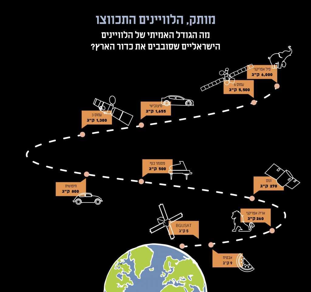 את הלוויין עצמו אני לא יכולה לראות - הוא הרי מסתובב בחלל - אבל דגם שלו בגודל טבעי אני זוכה להחזיק. לו רציתי לעשות אותו דבר לפני כמה עשרות שנים, סביר להניח שהייתי זקוקה למעט עזרה: משקל לווייני התצפית הגיע לכמה טונות, וגודלם היה בהתאם. Envisat, ששוגר לחלל בתחילת שנות האלפיים, שקל כ־8,000 קילוגרמים וגודלו היה כשל אוטובוס. הלוויין הישראלי־צרפתי "ונוס" הוא מיקרו־לוויין, שמשקלו מגיע ל־270 קילוגרמים בלבד. המהפכה בממדי הלוויינים קשורה במהפכת הנו־טכנולוגיה של שנות התשעים ובתהליך כללי של מזעור טכנולוגיה, שבא לידי ביטוי ברכיבי סלולר, מחשבים ועזרים רפואיים. במשימות חלל, משמעות הכיווץ היא קודם כול כלכלית. המרכיב הכי יקר במשימה, באופן דרמטי, הוא השיגור; ככל שהלוויין כבד יותר, כך נצטרך להוציא יותר כסף כדי לשלח אותו לחלל. כאן יש יתרון גדול לביג'י הצנום, שתוכנן בקפידה ונבנה בתעשייה האווירית בשיתוף עם סוכנות החלל הישראלית.