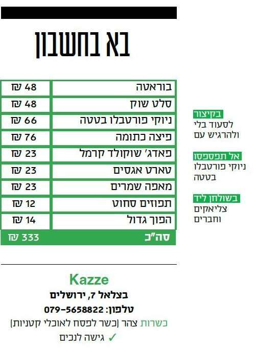 התמחור אמנם קצת יקר וחבל שאין יותר מקומות ישיבה, אבל Kazze היא בשורה של ממש. אם מציון יוצאת תורה, הרי ש־Kazze היא ההוכחה שהיא יכולה להגיע גם בלי קמח.