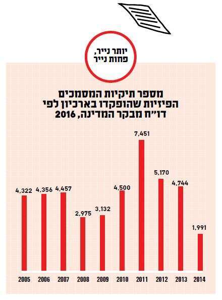 בעמוד הבית של אתר הארכיון מצאתי מעין הסבר־התנצלות: "אתר ארכיון המדינה נפגע ומאז עובר תהליכי שדרוג ועדכון", כך נכתב שם. "בנינו אתר מאובטח יותר, עם מנוע חיפוש מהיר יותר, ותיקנו מספר רב של תקלות. במהלך השדרוג התגלו תקלות ובעיות חדשות. אנו מודעים לתקלות אלו ועמלים על תיקונן".