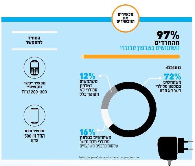 אם תיכנסו לחנות סלולר מן השורה, תבחינו מיד שהעיצוב שלה מכוון למשוך את עיניכם אל הטלפונים החכמים ביותר, המתקדמים ביותר, ולא פעם גם היקרים ביותר. כיתובים בולטים וסרטונים מאירי עיניים יספרו לכם על נפח הזיכרון העצום של המכשיר, על איכויות הגלישה שהוא מציע ועל מצלמת סלפי שלא תעשה לכם בושות מול כל העוקבים באינסטגרם ובטיקטוק. לעומת זאת, בחנויות סלולר בבני־ברק או בשכונות חרדיות בבירה, תפגשו גישה שיווקית שונה לחלוטין: כאן הוויטרינות מציעות ללקוחות רק מכשירים טיפשים, או בשמם הידוע "טלפונים כשרים". ככל שמצטמצם מגוון האפשרויות הגלומות במכשיר, כך הוא נעשה מהודר יותר - סמל סטטוס מגזרי נחשב.