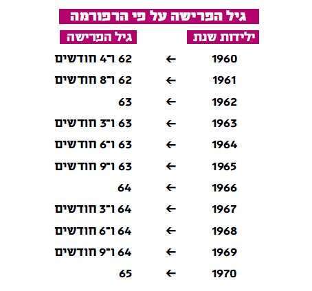לא רבים הנושאים שבהם ישראל מקדימה את המדינות המפותחות, אחד מהם הוא גיל הפרישה. כשבאירופה עוד ניהלו על הנושא מלחמות עולם עם מחאות ברחובות, ישראל העבירה בשקט ובלי הרבה התנגדויות רפורמה חשובה במיוחד ב־2003, שהעלתה את גיל הפרישה לפנסיה לגברים מ־65 ל־67, ואת גיל הפרישה לנשים מ־60 ל־62.