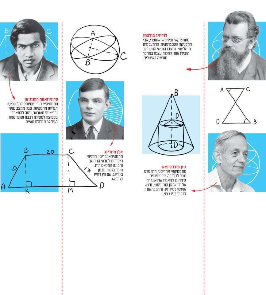 קפיצה אל ההיסטוריה מראה שכמה מהגדולים ביותר הטריפו והקריבו נפשם על מזבח המתמטיקה. בספרה מזכירה גלבוע־פרידמן למשל את גאורג קנטור, מתמטיקאי גרמני ואבי תורת הקבוצות, שחווה אפיזודות ארוכות של דיכאון ואושפז בבתי חולים לפגועי נפש; את אלן טיורינג, ממניחי היסודות למדעי המחשב והבינה המלאכותית, שהתאבד בגיל 42, לא מעט בשל היחס לנטייתו המינית; את לודוויג בולצמן, מתמטיקאי ופיזיקאי שתלה את עצמו במהלך חופשה באיטליה, כנראה בעקבות ההתעלמות מתגליותיו; את סריניוואסה רמנוג'אן, מתמטיקאי הודי שאחראי לאלפי תגליות מתמטיות אבל חווה גם משברים נפשיים אינספור, עד כדי ניסיון התאבדות על מסילת רכבת; "והרשימה ארוכה כל כך, וזה בלי למנות את המתמטיקאים שהתאבדו ולא חקקו את שמם על דפי ההיסטוריה".