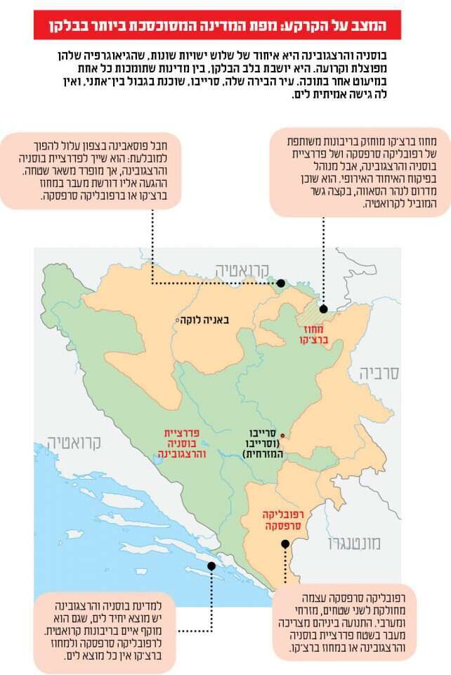 התוצאה המעוותת של הסכם דייטון היא מדינת בוסניה והרצגובינה של ימינו, איחוד של שלוש ישויות פוליטיות: א. בוסניה והרצגובינה; ב. רפובליקה סרפסקה (או "הרפובליקה הסרבית"); ג. מחוז ברצ'קו העצמאי. כל יחידה מייצגת את אחת הקבוצות הגדולות במדינה – בוסנים, סרבים וקרואטים, בהתאמה. הסכם דייטון הסתמך על כוח חיצוני שיכפה על החלקים הנפרדים להיצמד זה לזה: אם אחד מהם ינסה להתפצל מהאחרים, העולם ילחץ על הפורש וישמר את האיחוד. אבל לקהילה הבינלאומית אין היום קשב למתחולל בבלקן; ארה״ב ומדינות האיחוד האירופי עסוקות באוקראינה ובסין, ונשיא הרפובליקה הסרבית מבין זאת היטב.