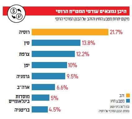 בכל מקרה, רוב הסחר הרוסי תלוי בדולרים ולכן גם בסוויפט. הרוסים מנסים להתנתק מהדולר, אבל המטבע האמריקני עדיין שימש ב־56 אחוזים מהעסקאות של רוסיה במחצית הראשונה של 2021, ירידה מ־69 אחוזים ב־2016.