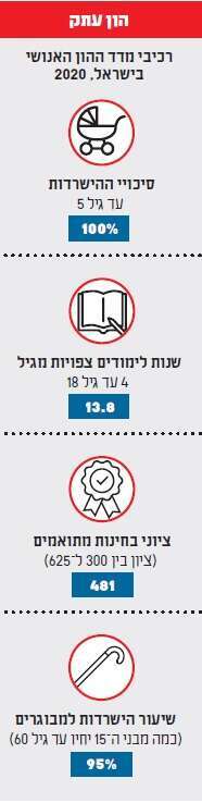 דבר אינו ודאי. ההון האנושי הישראלי נמצא בבעיה, ומותקף מכמה חזיתות. מערכת החינוך מסורבלת, אינה מתגמלת מורים מצטיינים ומעדיפה ותק על פני יכולות. קבוצות גדולות באוכלוסייה, כמו הערבים או החרדים, אינם משיגים השכלה מספקת כדי להשתלב בתפקידים בעלי פריון גבוה בשוק העבודה. היעדר לימודי ליבה פוגע בחרדים רוצים שרוצים להשתלב בלימודים אקדמיים. היעדר עברית ברמה מספקת מונע מרבים מבני המגזר הערבי ללכת ללימודים אקדמיים.