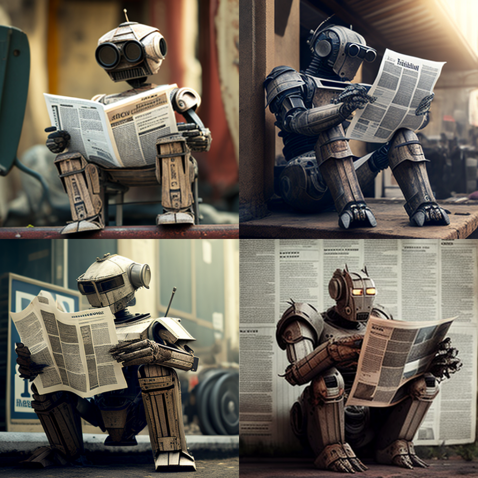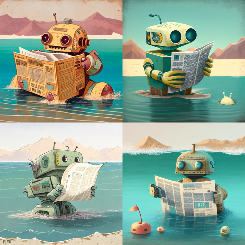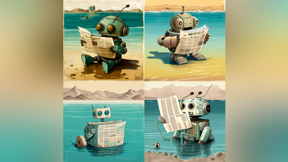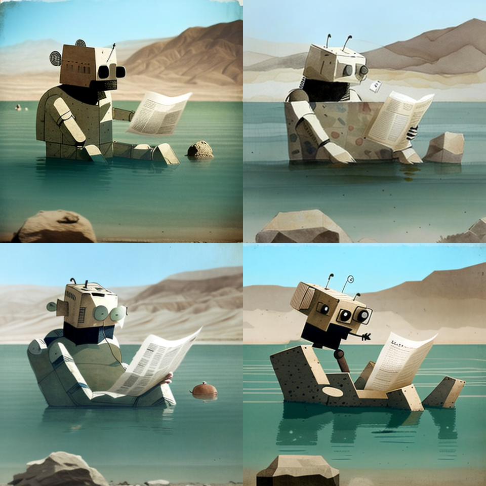 2. מה ביקשנו? תן לנו תמונה של אותו הרובוט הקורא עיתון - אמרנו לבינה המלאכותית - אבל הפעם כשהוא צף בים המלח.