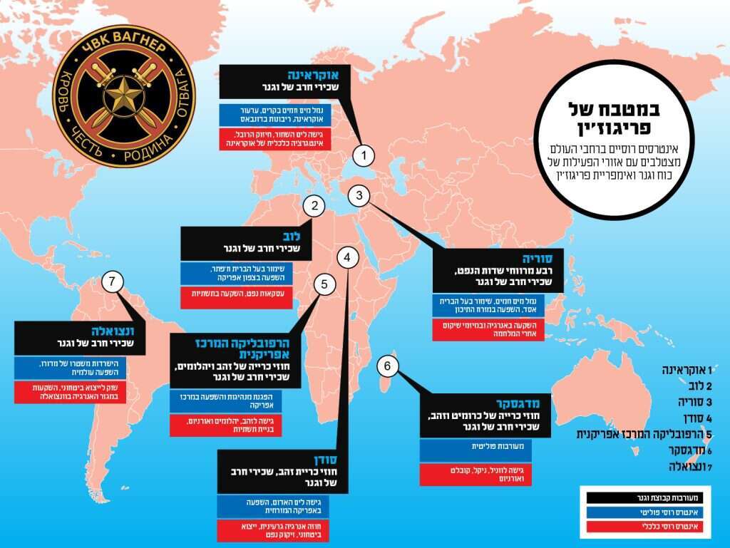 מקרה אחר הוא סוריה. גם שם, במקביל לבואם של שכירי החרב של כוח וגנר לעזרתו של משטר אסד, הממשלה חתמה על חוזה עם חברת "אברו פוליס" לאבטחת מתקני נפט, בתמורה ל־25 אחוזים מהכנסות המתקנים ממכירה של נפט וגז טבעי. ב־2020 הכנסות "אברו פוליס" עמדו על 134 מיליון דולר; הרווח היה שיעור ניכר מכך - 90 מיליון דולר. "אברו פוליס", כפי שאתם יכולים לנחש, נמצאת בבעלות פריגוז׳ין.