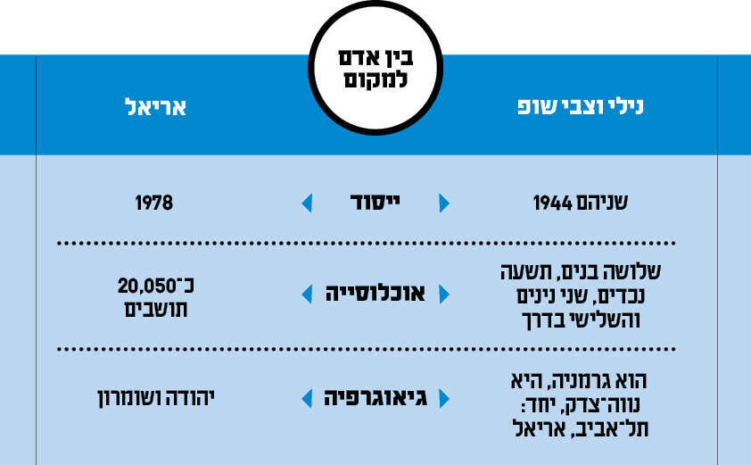 כשהרעיון כבר קרם עור וגידים, הגיע לביקור המדריך המיתולוגי יגאל כהן־אורגד. כשרעייתו שרה שמעה את החוויות של הזוג שופ, היא הפנתה אליו מבט והודיעה: "יגאל, אנחנו עוברים לאריאל". "שרה הפכה למנהלת בית הספר", מספרת נילי. "אני הייתי מזכירת הגרעין, וכשצוות ההקמה של משרד השיכון לקח אותנו תחת חסותו, הייתי העוזרת של ראש הצוות, מאיר ביבר. צבי המשיך לעבוד בתע"ש".