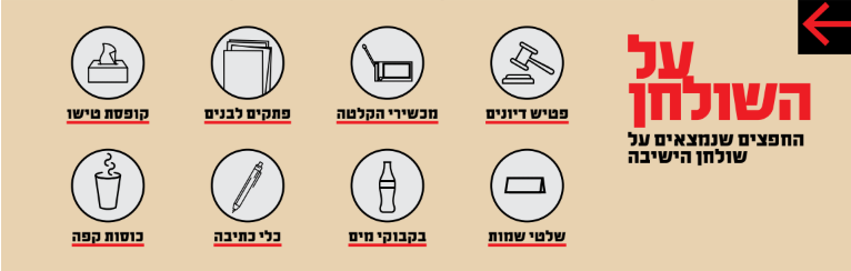 שני השרים־המשקיפים האחרונים שהצטרפו לישיבות הקבינט הם וסרלאוף וסטרוק. שניהם נוספו לפורום בשל לחצים פוליטיים, וביום הצטרפותם, מספרים בקבינט, לא היה כמעט מקום ליד השולחן. סדר הישיבה סביבו קבוע בדרך כלל. נתניהו יושב במרכז. לימינו יושבים ראש המל"ל והמזכיר הצבאי, ולשמאלו מזכיר הממשלה. שר הביטחון כ"ץ יושב מול נתניהו, לשמאלו הרמטכ"ל ולימינו השר דרמר. ראש השב"כ וראש המוסד תופסים את ראש השולחן, ולידם היועצת המשפטית לממשלה. בקצה הנגדי של השולחן יושב השר אמסלם. זה לא במקרה, צוחקים חברים בקבינט: אמסלם עוקץ את היועמ"שית לא פעם, ולפעמים גם את הרמטכ"ל. כשעוקצים את מיארה, לדבריהם, היא שומרת על הבעה חתומה, אך במקרים מסוימים היא עונה לשרים, אפילו בהרמת קול. מנגד, כשהרמטכ"ל הלוי מותח מעת לעת ביקורת על הדרג המדיני, סמוטריץ' ובן־גביר מזדרזים לענות לו.