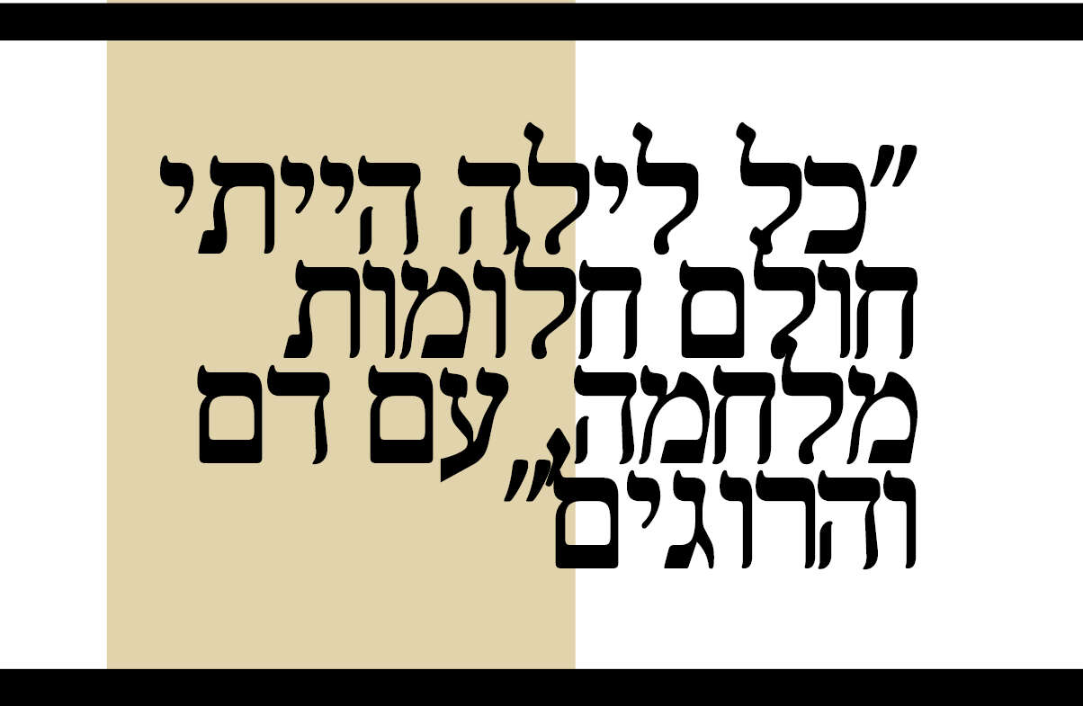 "רוב הזמן אני לבד עם עצמי, בתוך העולם שלי. לא מסוגל לדבר עם אנשים. כל הזמן רצות לי התמונות מול העיניים. יש לי בן בחו"ל והוא שואל אותי למה אני לא מתקשר ומדבר איתו. אמרתי לו שיש לו אמא ושידבר איתה. אני פשוט לא מסוגל. אני מפחד שבזמן שאני מדבר עם מישהו משהו יכול לקרות ולא אוכל לפעול נגדו. אני צריך להיות דרוך. גם כשהנכדים מגיעים, אני יושב בפינה עם עצמי, לא מדבר עם אף אחד, כמו אילם. אם הם רואים טלוויזיה, אני יכול לשבת איתם, אבל תמיד מול הדלת, כדי שאם יקרה משהו אוכל לברוח".