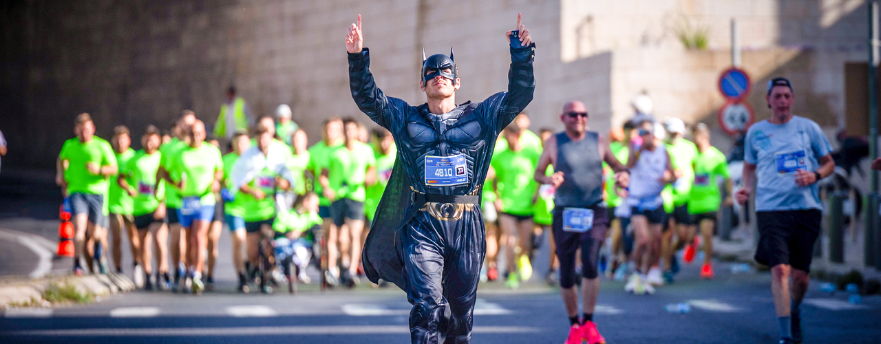 הידיעה על החזרת גופותיהם של אריאל כפיר ושירי ביבס הגיעה אל יואל לוי, מאמן כושר יהודי־בריטי, יום לאחר שנרשם למרתון ירושלים. "הבשורה טלטלה אותי", מספר לוי. "נושא החטופים נגע לליבי יותר מכל דבר אחר, וכשקראתי על משפחת ביבס, הרגשתי שנפשי נקשרה בנפשם. זה אולי יישמע קצת מטופש, אבל יש לי שני אחים ג'ינג'ים, ולא יכולתי שלא לחוש אמפתיה מיוחדת לסיפורם של אריאל וכפיר. הרגשתי שאני חייב להנציח אותם. החלטתי שבמרתון בירושלים ארוץ בתחפושת של באטמן. רציתי בעיקר למשוך תשומת לב - שכל מי שיראה אותי יחשוב שאני מוזר, ואולי יחפש ברשת למה הבחור המצחיק הזה רץ מחופש לגיבור־על. קיוויתי שככה גם אחרים יגלו את סיפורה של משפחת ביבס, וצדקתי. זו ההסברה שאני מאמין בה: לא להכריח אנשים להכיר את המציאות הישראלית, אלא לגרום להם להתעניין בה".