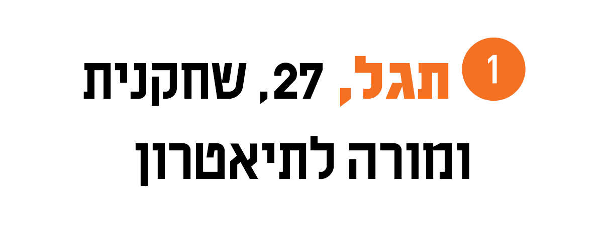 הפרנסה // תגל היא שחקנית ומורה לתיאטרון. היא משחקת בהצגה "דירת רווקות" בתיאטרון "אספקלריא", שרצה על הבמות כבר שלוש שנים, ובהצגה "שלוש אחיות ואחת שיודעת". היא מלמדת בבית הספר עץ השיטה של תיאטרון "פסיק" וגם בבית הספר תדהר לחינוך מיוחד. "שם אני באמת משתחררת, משתטה, בלי שיפוט. אחד הדברים שאני הכי אוהבת זה ללמד. זה מפגש מתמשך, לא רגעי".