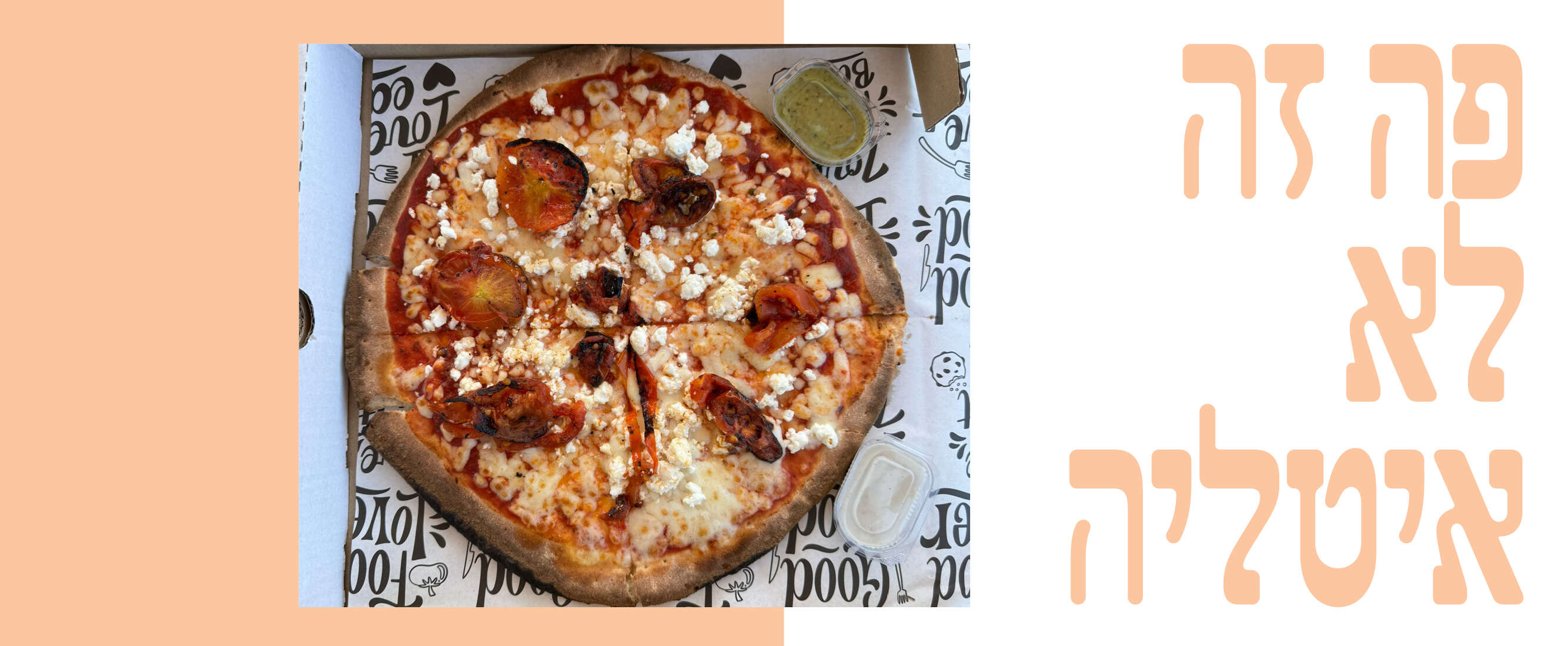 הזמנו פיצה מרגריטה בתוספת גבינה בולגרית ועגבניות חרוכות והתיישבנו בחוץ מול הים. על אף ששבענו מהמאפים ב"בלי קמח", הרעב חזר עם מגש הפיצה הלוהטת שהונח לפנינו מדיף ריח מגרה. הבצק הגיע בעובי מושלם וקריספי בקצוות ואוריה אישרה שלפיצה יש טעם של בצק אמיתי, אבל עדיין היא לא הזכירה לנו את איטליה כמו הפיצה הירושלמית ב"קאזה", היא רק סיפקה תחליף איכותי לפיצה ללא גלוטן. התאכזבנו לגלות שלא ניתן לבחור כל פיצה שקיימת בתפריט אלא רק פיצה מרגריטה ולהוסיף עליה תוספות ותוספת תשלום.