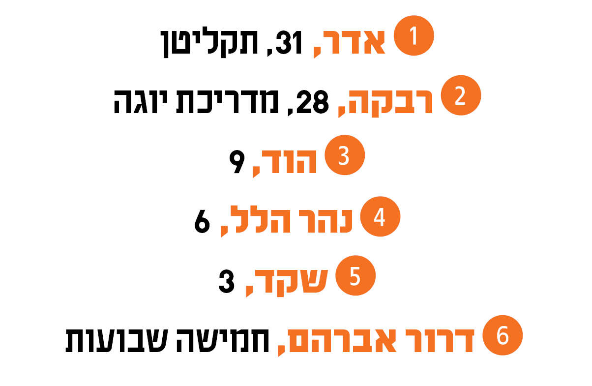 והשאר היסטוריה // הדייט הראשון שלהם נמשך 12 שעות. "זה היה היום הכי חם בשנה, נסענו לאבן־ספיר, טיילנו, טיפסנו על עצים, הסתובבנו. הכול זרם מאוד טבעי". כשהגיעו לבית של רבקה בלילה, אדר שאל אם היא רוצה להמשיך. "לא הבנתי בכלל את השאלה. מבחינתי זה היה ברור". בתוך חודש הם כבר התארסו, וכעבור שלושה חודשים וחצי עמדו יחד מתחת לחופה באוהל בכפר־עציון. "זו הייתה היכרות קצרה אבל אינטנסיבית. היה לנו הרבה זמן יחד וזה הרגיש נכון".