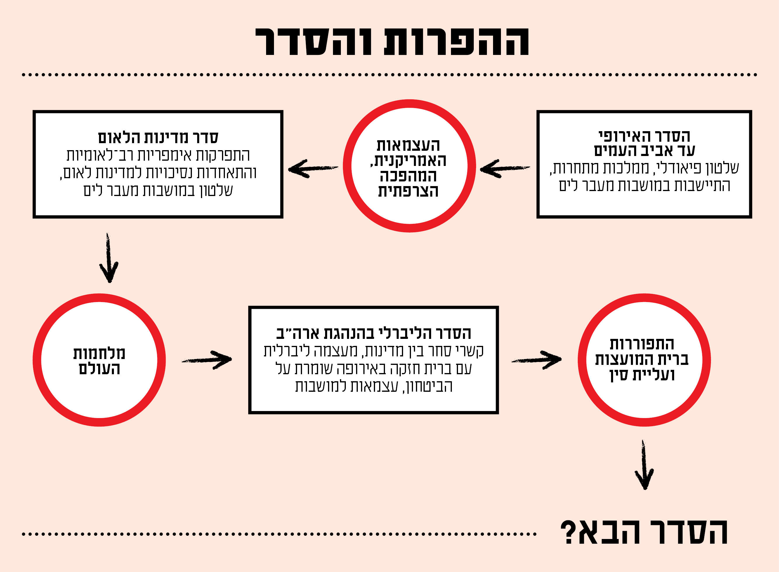 הסינים מנסים למשוך את הסדר העולמי לכיוון אחד. האמריקנים מנסים למשוך לכיוון אחר. התוצאה, בינתיים, היא שהסדר נקרע. אם אתם מרגישים ש"משוגע שם בחוץ״ – אתם צודקים. הנורמות כבר לא תקפות. המעצמות פועלות להחליש זו את זו. שיתוף פעולה בינלאומי נעשה מורכב וקשה יותר, משום שמדינות מתקשות להסכים על מטרת שיתוף הפעולה ועל הדרך אל המטרה הזאת.