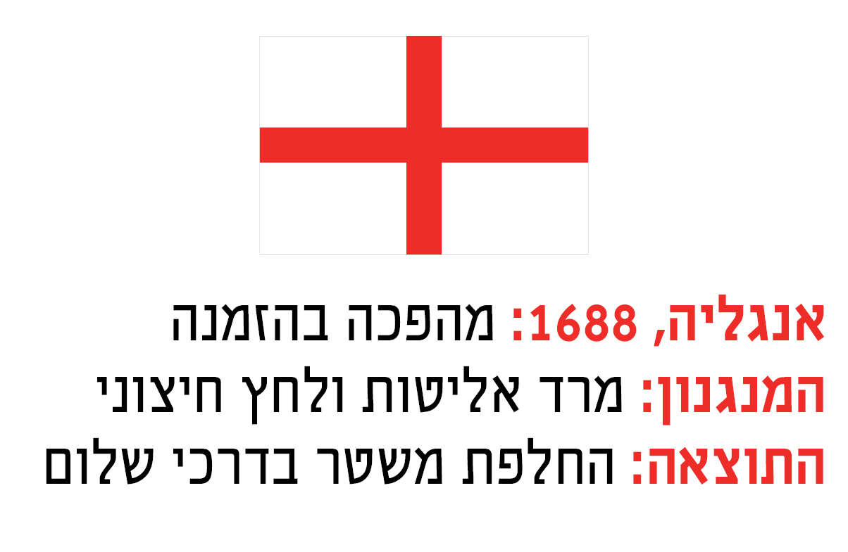 כדי להבין כיצד דבר כזה יכול לקרות, נרחיק עד לשלהי המאה ה־17. בשנת 1688 הייתה אנגליה אומה פרוטסטנטית שדהרה לעבר אסון. המלך ג'יימס השני, שהיה קתולי, הלך ודחה את בכירי הממסד הפוליטי והצבאי, שהיו פרוטסטנטים ברובם. הוא ביטל את חקיקת הפרלמנט, מינה עוד ועוד קציני צבא שהיו נאמנים לו, ודחף את המדינה למה שנראה כמלחמת אזרחים הרסנית.