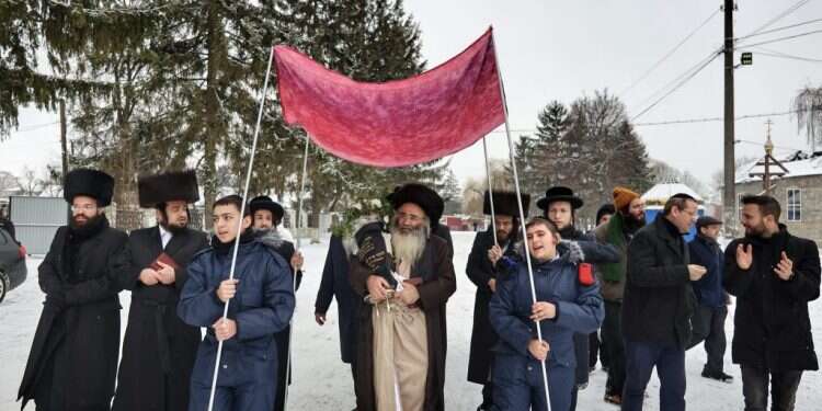 בין מגרש נטוש ואגם מושלג שוכן ציון קברו של המגיד מזלוטשוב, מראשוני החסידות. דקות ספורות של הליכה מבית המלון בעיר יאמפיל, אבל הקור האוקראיני מצמית. שכבת שלג עבה מכסה את השביל המוביל מהמלון לציון, כמעט כמו בכל קברי הצדיקים שבהם ביקרנו במהלך המסע. זוג מקומי עובר ומתבונן בתימהון על החבורה בשטריימלים וחליפות שרוקדת בשלג עם ספר התורה. מן הסתם הם לא ממש מבדילים בין הסגנונות השונים של האנשים, ששותפות גורל אכזרית קיבצה אותם לעיירה הקטנה בצפון מזרח אוקראינה.