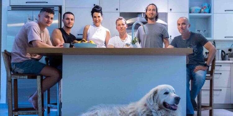 הבית // בית פרטי, כמאתיים מ"ר, בנחלה במושב, צמוד לבית המקורי של הנחלה, שבו גר עכשיו נבו. בשטח החקלאי, חבר מגדל מזון לסוסים. "קנינו את הנחלה כשהיינו עם ילד אחד. התלבטנו בין דירה ברמת־גן לבית פרטי במושב, וזו הייתה אחת ההחלטות הנכונות ביותר שעשינו. בזמנו היה כאן רק בית הסוכנות הישן, 70 מ"ר, ושם התגוררנו במשך שנים, גם כשהמשפחה התרחבה ונולדו לנו ארבעת ילדינו. היינו ישנים בחדר אחד על מזרנים, אנחנו והילדים. לא ידענו על 'עיקרון הרצף' או 'הורות מקרבת', זה פשוט נראה לנו נכון. כשרצינו זמן לעצמנו בתור זוג, ידענו למצוא אותו. כשהילדים בגרו הם עברו לישון בסלון. לפני כעשור החלטנו לבנות את הבית הנוכחי". מאחורי הבית יש חורשה של עצי נוי ומעט עצי פרי. עמיר: "אני אוהב עצים, אז שתלנו לא מעט מהם".