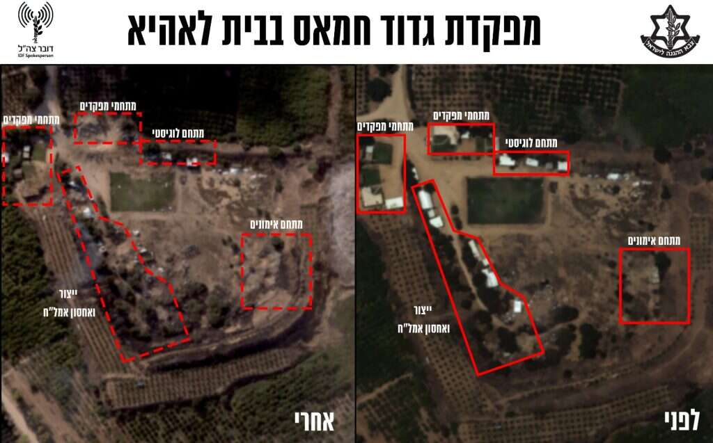 מוקדם יותר אתמול, בשעות הצהריים, הותקפו מטרות נוספות של חמאס, המרכזית שבהן מפקדת חמאס בבית להיא. במפקדה הותקפו שטחי אימונים ללוחמה בשטח בנוי, מחסני אמצעי לחימה, מתחמי אימונים, חמ"לים ומשרדים. כמו כן הותקפו גם אתר לייצור אמצעי לחימה ומחסני אמל"ח שבהן אוחסנו גם אמצעים של הזרוע הימית של חמאס, המנסה לבצע פיגועים דרך הים.