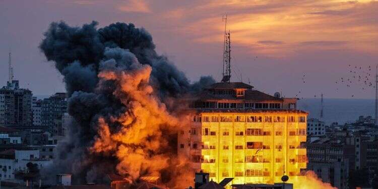 תמונות מרצועת עזה. הפגזת מגדל פלסטין. חמאס הגיבו לפגיעה בירי רקטות למרכז pic.twitter.com/rnC5bgDiE7