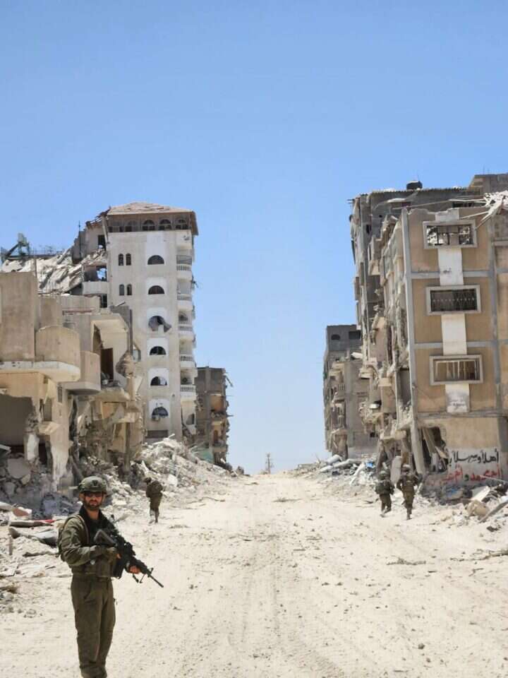 אנחנו צועדים כעשר דקות בין המבנים ההרוסים של NPK, כשבדרך המח"ט מצביע על מסגד גדול, הרוס בחלקו ואומר: "מצאנו שם פיר מנהרה גדול ועוד תוואי של תת קרקע. זה מראה איך חמאס משתמש בשטח. זה אזור קלאסי – צפוף, אורבני וקשה, הרבה מעברים בין בית לבית כדי לא להיחשף, וכל השהייה המשמעותית שלהם מתחת לאיתורים 'רגישים', שהם חושבים שלא נתקוף אותם שם".