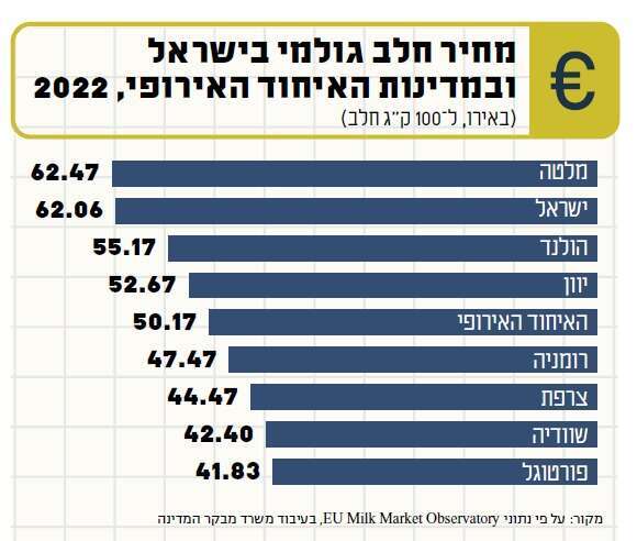 השבוע חלבו אותנו עוד קצת. בבוקר יום שלישי הוכרז על עלייה של 9.28% במחיר מוצרי החלב המפוקחים, אחת־עשרה במספר. למחרת הודיעו כל המחלבות הגדולות – תנובה, שטראוס, טרה – שגם מחיר מוצרי החלב שאינם בפיקוח יעודכן כלפי מעלה. הכותרות התמקדו בשר האוצר בצלאל סמוטריץ' ומאמציו בדקה התשעים להפחית את ההתייקרות, שהייתה אמורה לעמוד על 16% לפי הסכם שחתמה הממשלה הקודמת עם המחלבות והרפתנים. גם אז, שר האוצר אביגדור ליברמן דחה ברגע האחרון התייקרות בשיעור ניכר, והעביר את כוס התרעלה למשמרת של הבא אחריו. חוק טבע: אנשים שהצלחתם בעבודה תלויה באהדת הציבור, לא רוצים לחתום על התייקרות מחירים. אבל האמת היא שגם לפני גל האינפלציה הנוכחי, מחיר החלב לצרכן בישראל הוא מהגבוהים בעולם: 77% יותר מהממוצע באיחוד האירופי, לפי דו"ח מבקר המדינה שפורסם השבוע.