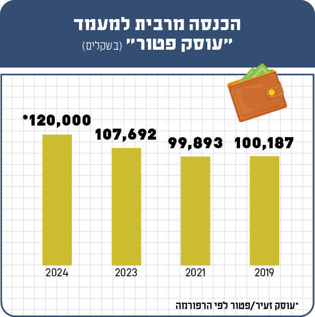 קרוב ל־400 אלף איש בישראל מוגדרים כ"עצמאים", בשלל מקצועות, חלקם עובדים גם כשכירים במקביל. החוק קובע כי עוסק כזה, שהכנסתו אינה עולה על 107,692 שקל (נכון לשנת 2023), מוגדר כעוסק פטור. כלומר, הוא אינו גובה מע"מ מלקוחותיו ואינו מחויב בדיווח למע"מ.