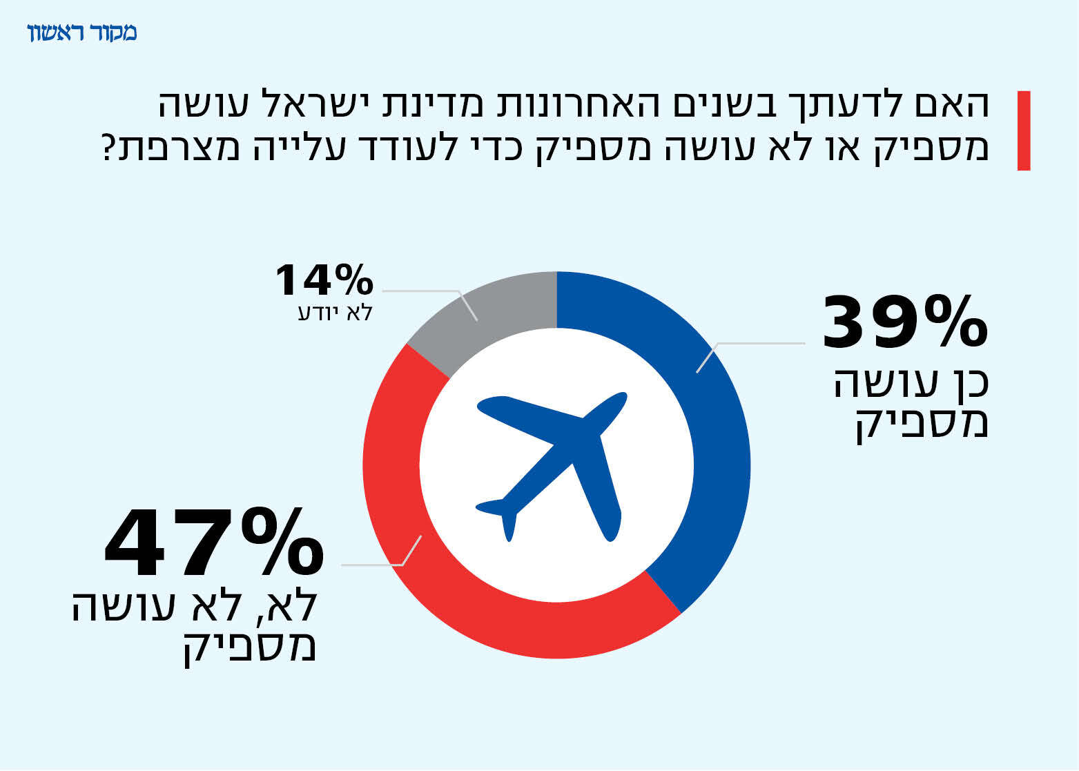 עוד עלה כי מרביתם אינם חושבים שישראל עושה מספיק כדי לעודד עלייה מצרפת: 47 אחוזים השיבו כי ישראל "לא עושה מספיק", ו-39 אחוזים דווקא חושבים כי "ישראל עושה מספיק" בנושא.