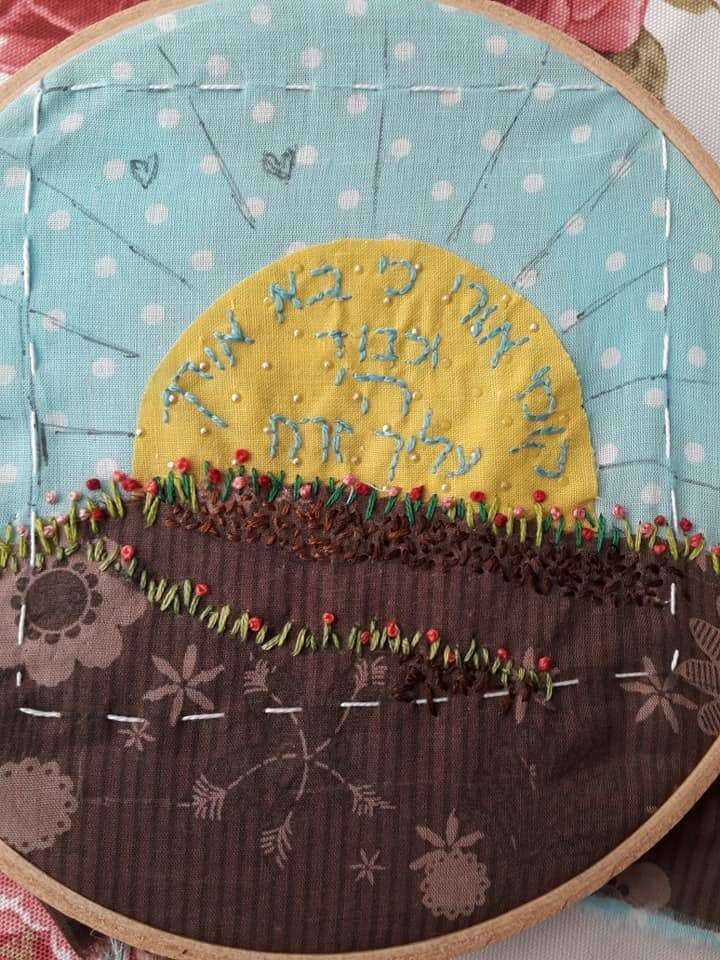 בת שבע סדן, בת 44 מעלי, מרגישה שאינה יכולה לעבור על הרצח של אורי אנסבכר ז"ל בשתיקה. "התגובה הרגשית המידית היא שדי, אי אפשר יותר. לפני חודשיים זה היה התינוק של עמיחי ושירה איש רן ועכשיו הרצח המזעזע הזה. האכזריות שלו אל מול התמימות שלה, והגיל שלה – הסיפור הזה נגע בכולם, במיוחד בנשים. כמו גם הידיעה הברורה שאורי היא לא הקורבן האחרון, שעוד חודש חודשיים, עוד מישהו ייכנס למעגל השכול של הטרור. לא יכולתי להמשיך הלאה. דיברתי עם אחותי במוצאי שבת. שתינו היינו שותפות לתחושה שאנחנו רוצות לעשות משהו אבל שאנחנו לא בקטע של הפגנות ופוסטים בפייסבוק. אמרתי לה 'בואי נאסוף כמה נשים ונכין רקמה משותפת'".