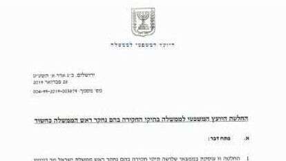 מצורפת החלטת היועץ המשפטי לממשלה בפרשות השונות.