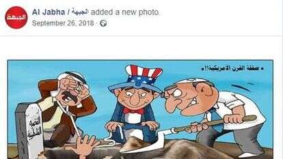 הקריקטורה עלתה לעמוד הפייסבוק בערבית של מפלגת חד"ש: "אל ג'בהה". בעמוד הפייסבוק הזה מתפרסמים תכנים השונים מעמוד הפייסבוק בעברית של המפלגה. בין היתר, אפשר למצוא מספר קריקטורות של המאייר האנטישמי קרלוס לאטוף המציגות את ראש הממשלה בנימין נתניהו כדמות מרושעת ושטנית הפועלת לחסל את הפלסטינים. קריקטורות שכמובן לא ניתן למצוא בעמוד בעברית.