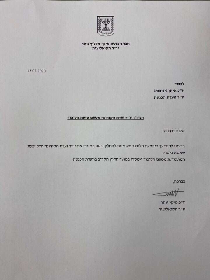 — ערוץ כנסת (@KnessetT) July 13, 2020